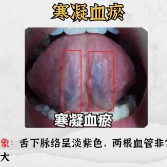 1、舌下脉络淡紫,血管粗大 —— 寒凝血瘀